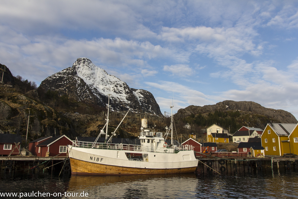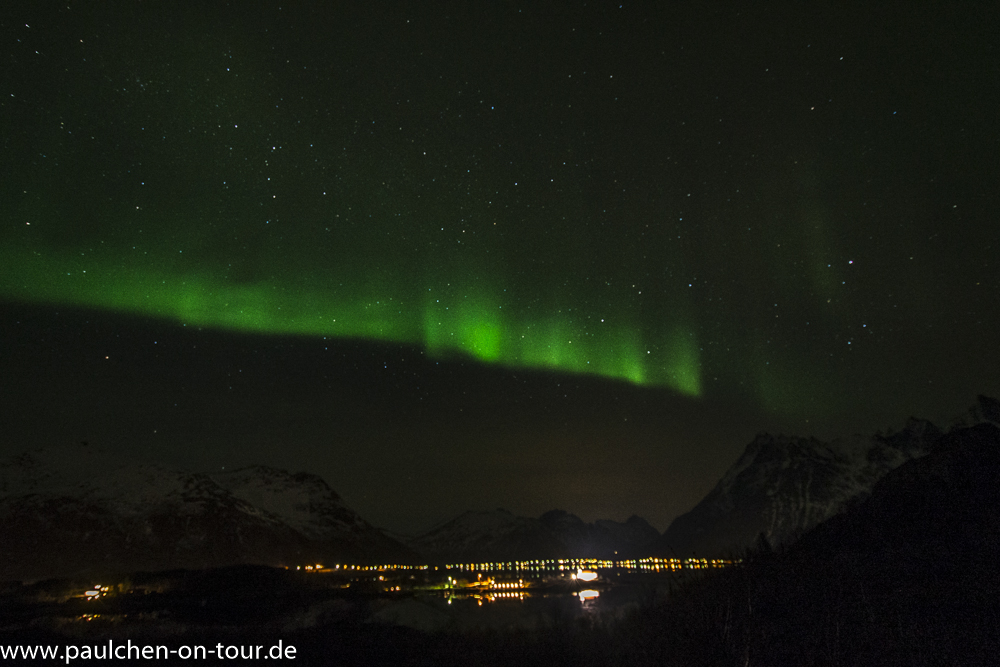 An den folgenden Tagen erkundeten wir die Gegend und besichtigten die idyllischen Dörfchen. Nachmittags suchten wir einen Nachtplatz mit fotogener Kulisse im Norden aber ohne störende Zivilisationsbeleuchtung und ruhten bis zum Einbruch der Nacht. Ab dann saßen wir mit unserer Fotoausrüstung parat und beobachteten den Himmel.Trotz Wetterverschlechterung und teilweise bedecktem Himmel hatten wir insgesamt sechs nächte das Glück Nordlichter zu sehen, nicht nur auf den Lofoten sondern auch in Nordfinnland und Nordschweden, zuletzt südlich fast am Polarkreis.