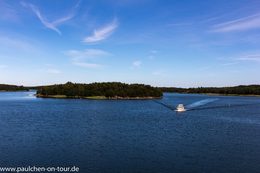 Man kann auf der „Großen Schärenstraße“ bis in den äußersten Südwesten vordringen. Wir hatten herrliches Wetter und genossen die Fahrt auf kleinen Sträßchen und das Inselspringen mit den kostenlosen Fähren. Leider war der Zugang zu den Ufern schwierig, da diese meist mit privaten Grundstücken gesäumt waren. Die größeren, landnahen Inseln sind relativ dicht bewaldet, auf den kleineren und landfernen Schären wird die Vegetation dann dünner. Auf der Insel Korppoo fanden wir einen Nachtplatz am Wasser, aber schon während der Nacht setzte heftiger Regen ein.