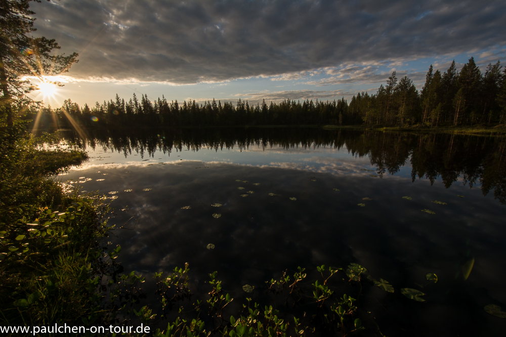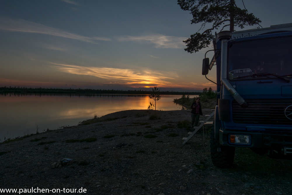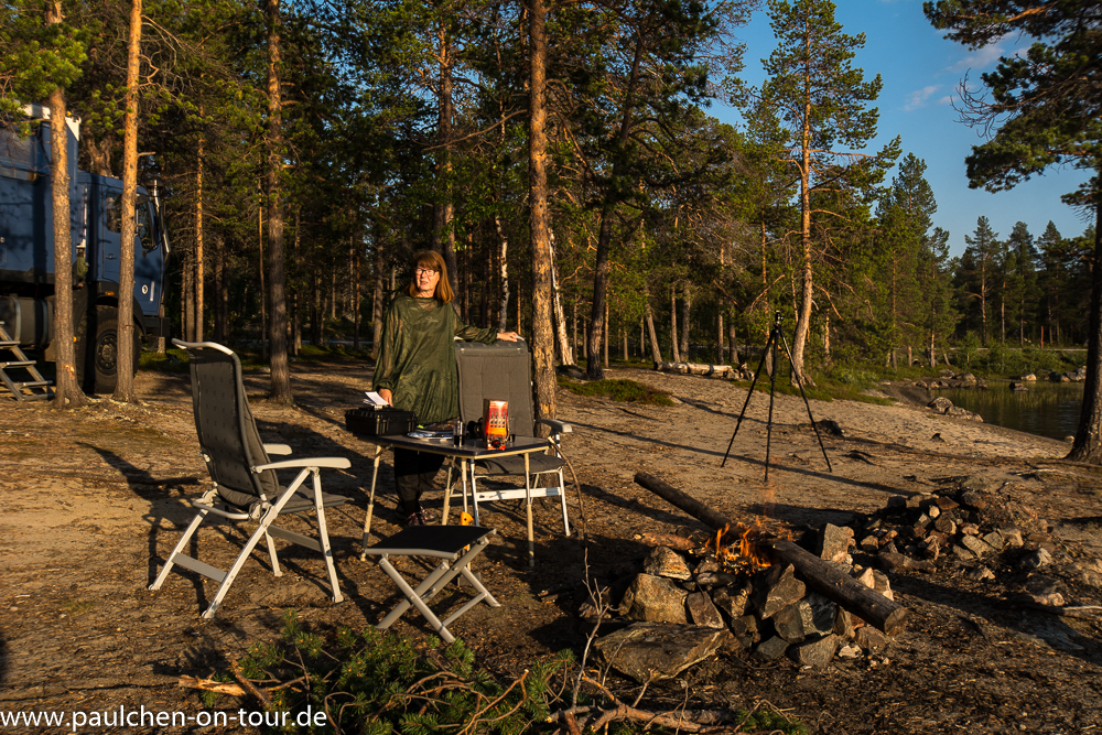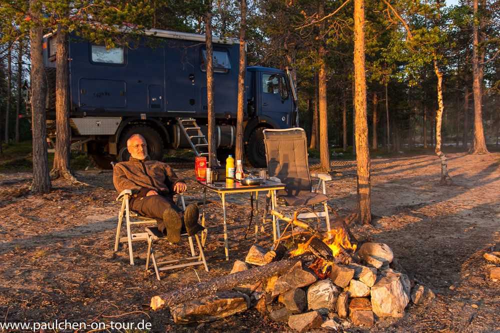 An der Strecke entdeckten wir einen schönen Stellplatz an einem See und da die Sonne schien, beschlossen wir dort zu übernachten. Wir sammelten Holz für ein Lagerfeuer und grillten. Am nächsten Morgen verließen wir Finnland, nachdem der Tank nochmals mit weniger teurem Diesel aufgefüllt war.