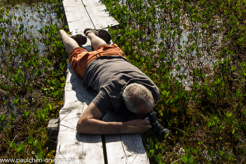 Einen weiteren Abstecher machten wir zum Wandern in den Oulanka Nationalpark. Am nächsten Morgen starteten wir um 7 Uhr zur „kleinen Bärenrunde“, einer schöner Tagestour durch herrliche Landschaft und mit abenteuerlichen Hängebrücken über Schluchten und Katarakte des Flusses Kitka. Da bisher die sommerlichen Temperaturen ausgeblieben waren, hielt sich auch bislang die Moskitoplage im erträglichen Rahmen.