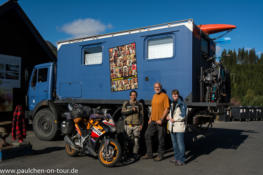 Die nächsten vier Tage verbrachten wir auf der Piste und machten Strecke bis Trondheim, unterbrochen nur von dem obligatorischen Halt am Polarkreis und kurzen Stopps in Mosjoen und Laksforsen.