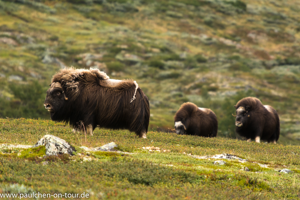 Als nächstes Ziel steuerten wir den Dovrefjell Nationalpark an, wollten dort wandern und die Moschusochsen sehen. Diese wurden hier in den 50er Jahren aus Südgrönland angesiedelt und repräsentieren die einzige wild lebende Population auf dem europäischen Festland.