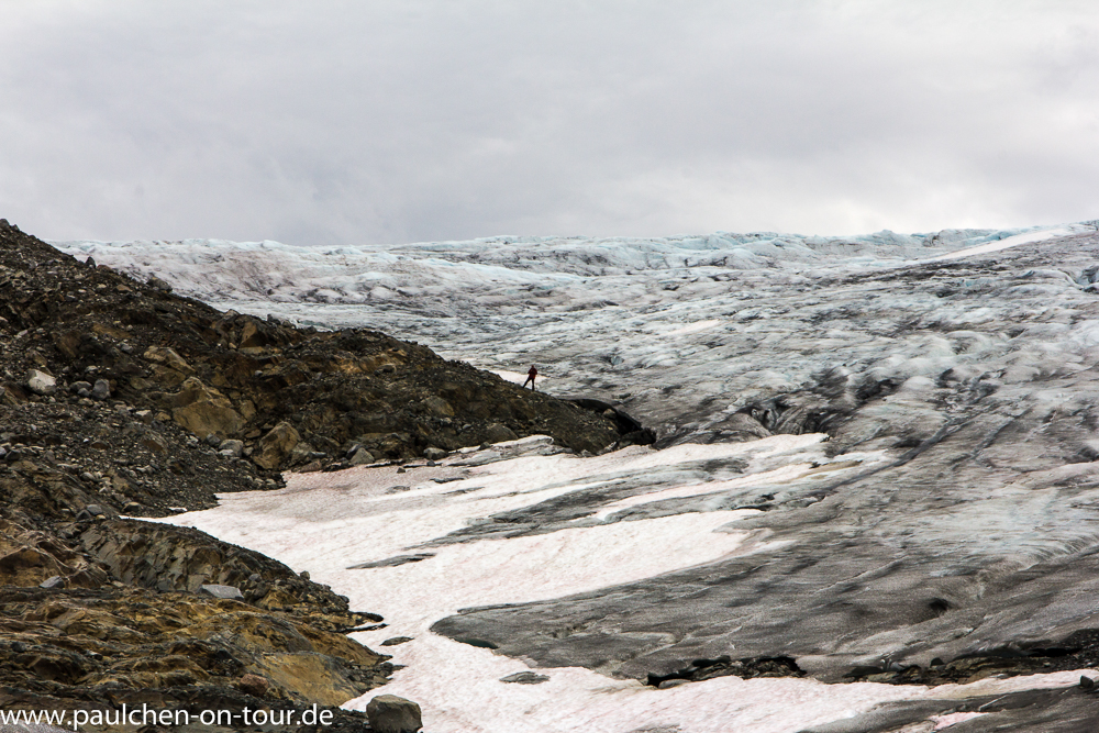 Wir unternahmen eine schöne Wanderung an einen Gletscher und erreichten unser Auto noch trockenen Fußes bevor der dunkle Himmel die Schleusen öffnete.