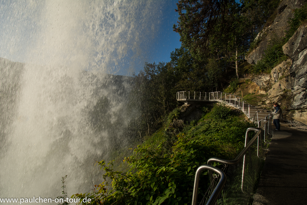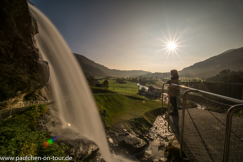 Am Steinsdalsfossen fanden wir einen schönen Nachtplatz. Man kann trocken hinter diesem Wasserfall entlanglaufen, was wir am nächsten Morgen testeten bevor die ersten Reisebusse anrollten.