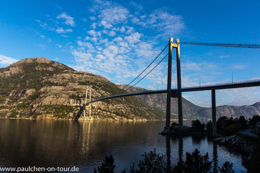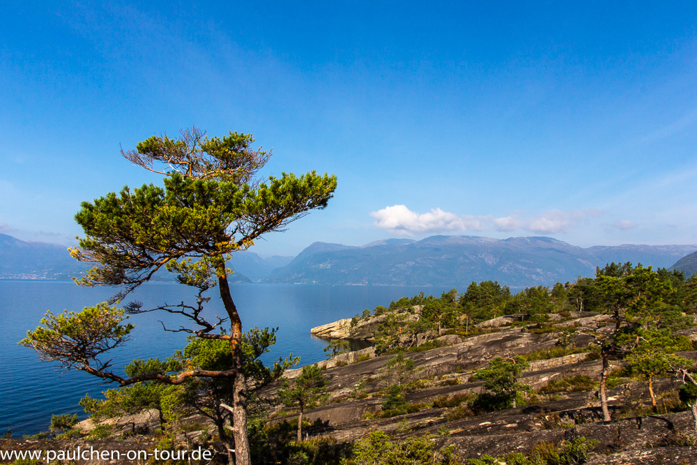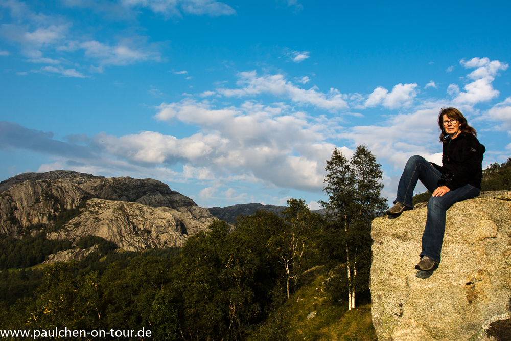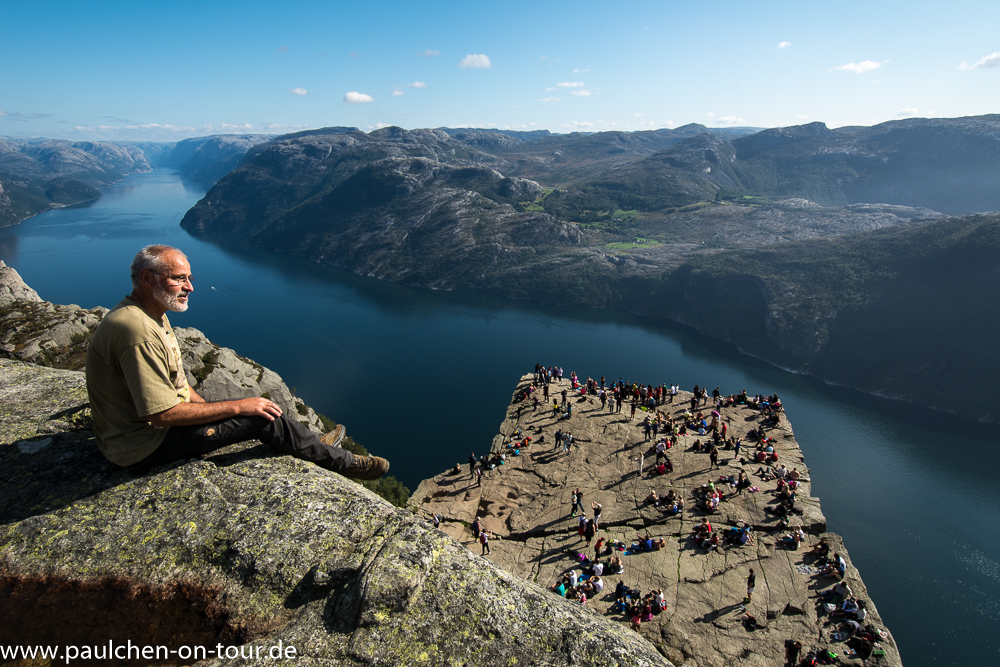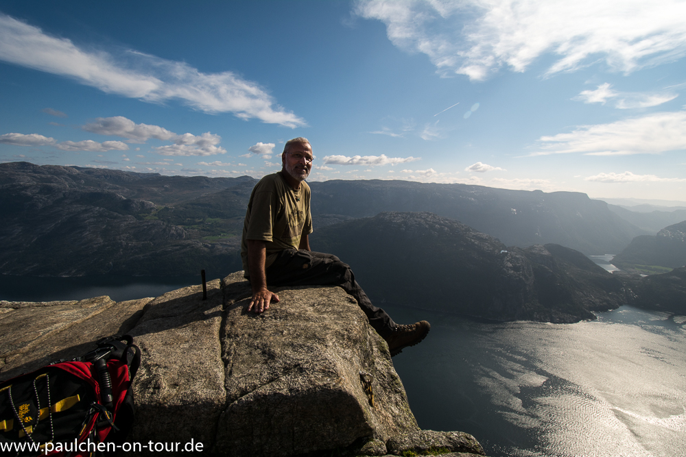 Es ist eine schmale, scharfkantige Felskanzel auf 607m Höhe, deren drei Seiten senkrecht in den Fjord stürzen. Der Blick über den Lysefjord ist großartig.