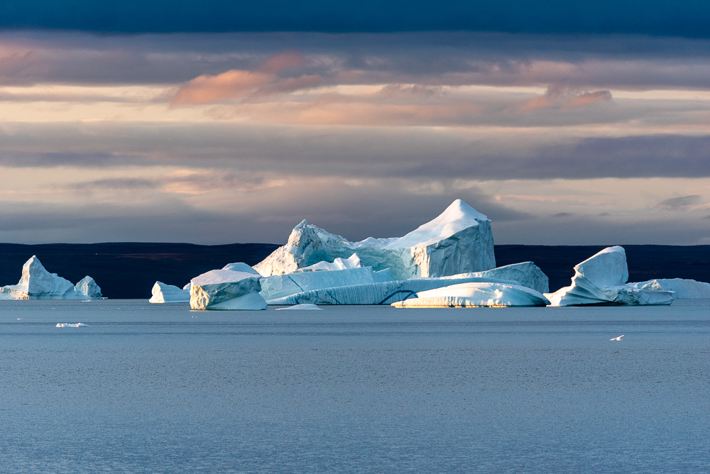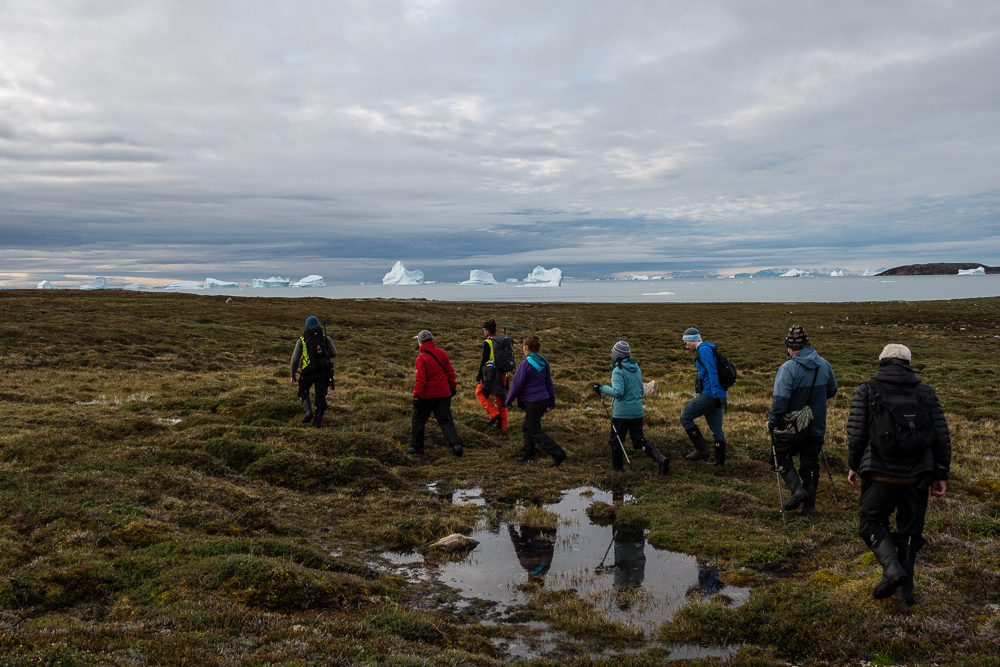 Das Ziel ist eine Zodiac-Kreuzfahrt in der Nähe von Røde Ø, einer der beliebtesten Eisberg-Attraktionen der Welt: Das schlichte Blau-Weiß der Eisberge hebt sich deutlich von dem brütenden Rot der Sedimenthänge ab. Am Nachmittag steht eine Fahrt durch den nördlichen Teil des Rødefjords auf dem Programm, bei der Sie Moschusochsen und warmes Spätsommerlaub sehen können.