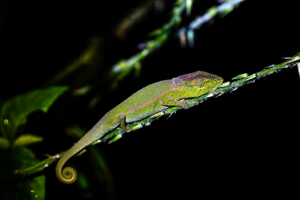 erkunden wir das Reserve Peyrieras und entdecken bunt schillernde Chamäleons und hervorragend an ihre Umgebung angepasste Reptlien.