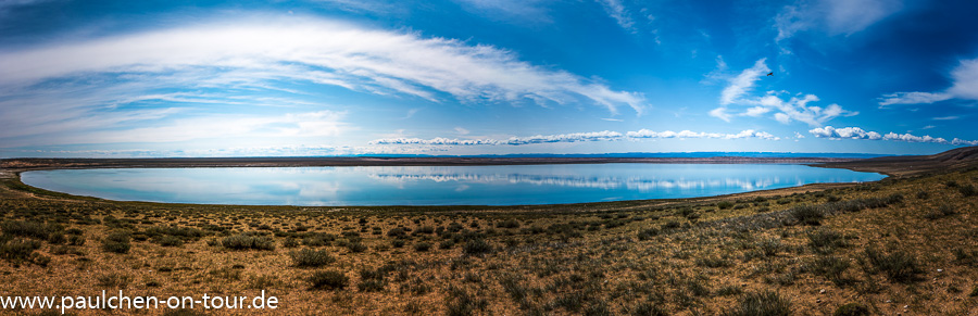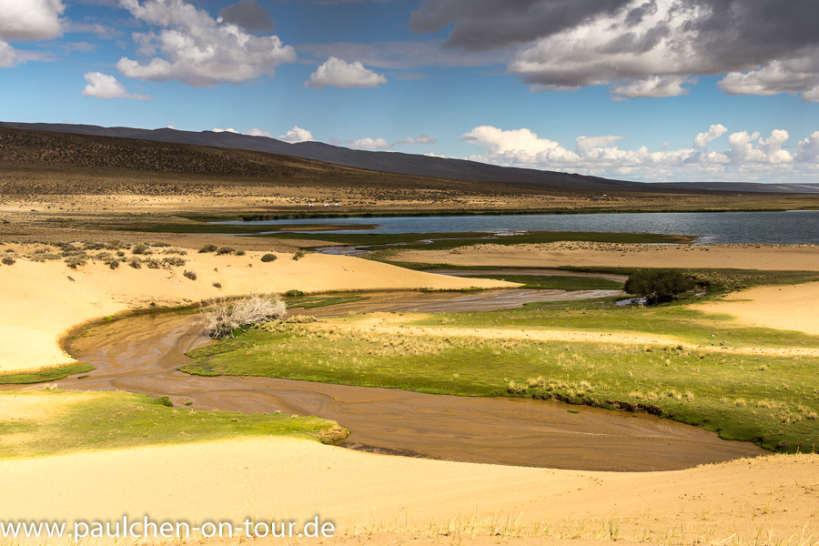 Bevor wir den Bayan Nuur verließen fuhren wir noch am Westufer entlang bis zur Nordspitze. Hier endet bereits das Dünengebiet und die Landschaft ist weiter und steppenartig.