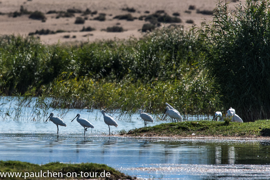 Nur etwa drei Kilometer von Zuungovi entfernt liegt ein weiterer kleiner, namenloser See in den Dünen. Hier lebt niemand und er hat einige Schilfinseln und verschilfte Uferbereiche, damit ist der See ein ideales Vogelparadies. Etwas Bewegung könnte uns ja auch mal gut tun und so umrundeten wir den kleinen See. Aus den geschätzten 2,5 Stunden wurden dann doch 4 Stunden bis wir unser Auto wieder erreichten. Landschaftlich gefiel es uns gut dort und zur Vogelbeobachtung ist der See auch zu empfehlen. Spektakulär war nachts an beiden Seen der klare Sternenhimmel mit der Milchstraße.