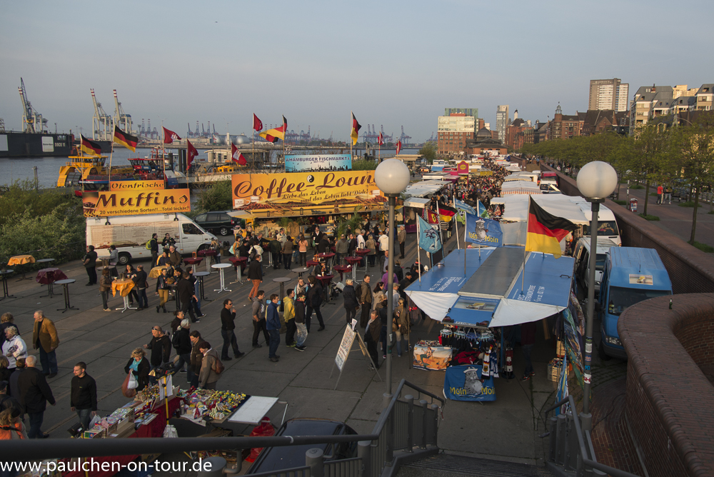 06:00 Uhr, auf zum Fischmarkt! Danach unternahmen wir noch einen Stadtrundgang zu Landungsbrücken, Speicherstadt, Binnen-Alster und Rathaus bei herrlichstem Sonnen- Frühjahrswetter.