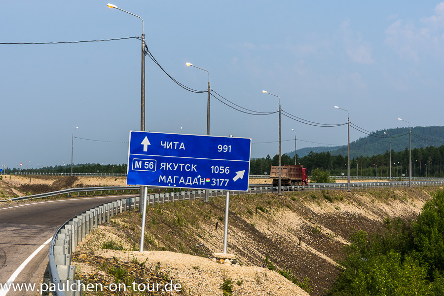 Abzweig Magadan 3177km, Jakutsk 1056km