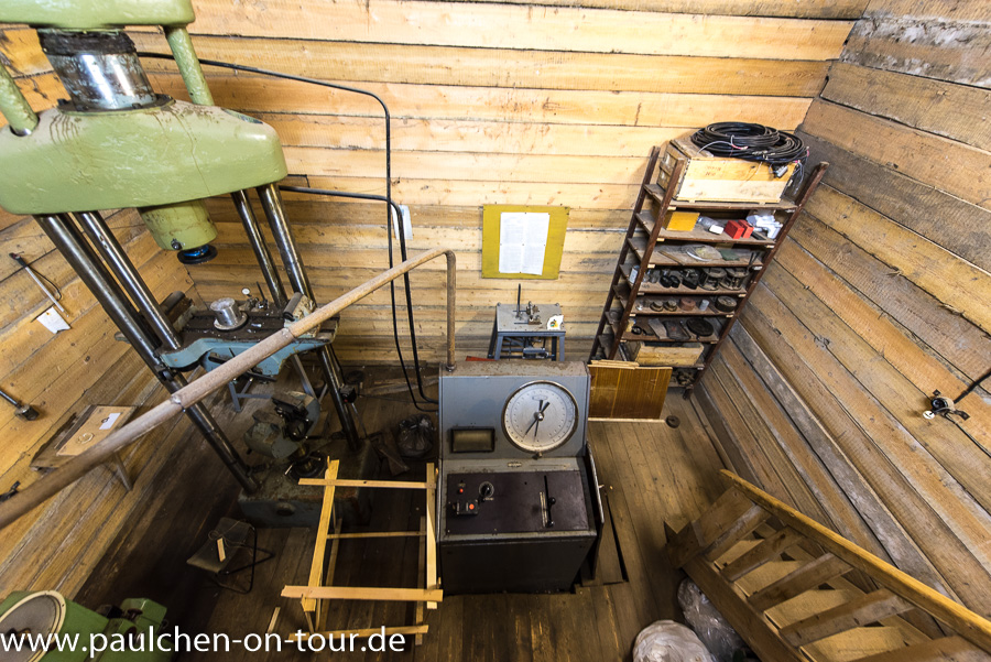 Auf Grund der besonderen Lage und den extremen klimatischen Bedingungen von Jakutien interessierten uns noch zwei kleine Museen. Wir besuchten das Dauerfrost-Museum in einem Forschungsinstitut und hatten eine sehr informative Privatführung. Hier besichtigten wir den Dauerfrost-Keller, der bis 12 Meter in den Boden getrieben wurde und eine konstante Temperatur von ca. -8°C hat. Dort werden Untersuchungen zur Eignung und Eigenschaften von Baustoffen im Permafrost durchgeführt.