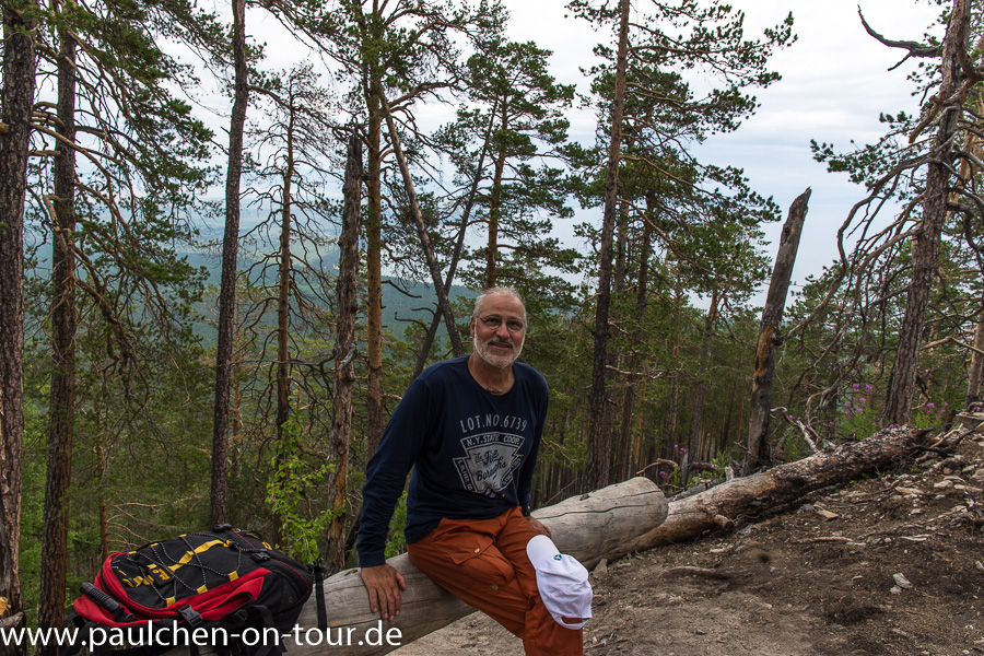 Das Wetter wurde etwas unbeständig, dennoch unternahm Achim mit unseren Nachbarn aus Vladivostok und Moskau eine Tageswanderung zum Markovo-Hochplateau. Durch die Bewölkung war es nicht so heiß und das war gut, denn es waren knapp 1200 Höhenmeter zurückzulegen und der Aufstieg war recht steil. Als Belohnung hat man vom Plateau einen herrlichen Blick auf die Barguzin Bucht.