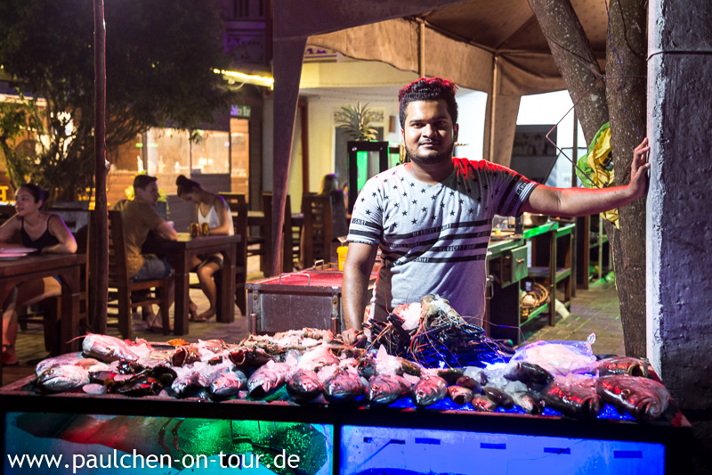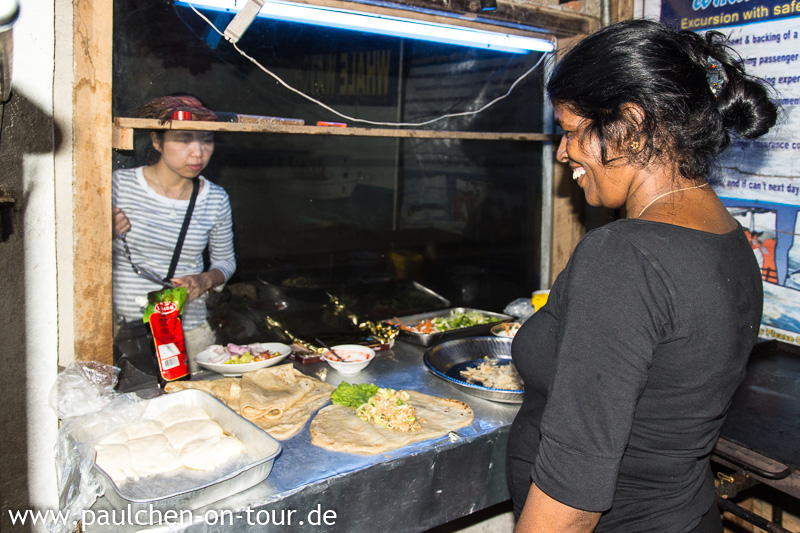 Bevor wir ins Landesinnere abbogen, machten wir noch Halt in Mirissa, einem schönen Palmenstrand und Surfer Hot Spot. Abends füllte sich der Strand mit Tischen und Stühlen, überall wurden frische Fische und Meerestiere angepriesen. Also verhungern muss man auf Sri Lanka definitiv nicht, überall findet man leckere Speisen und die abwechslungsreichen Currys sind echt Hammer!