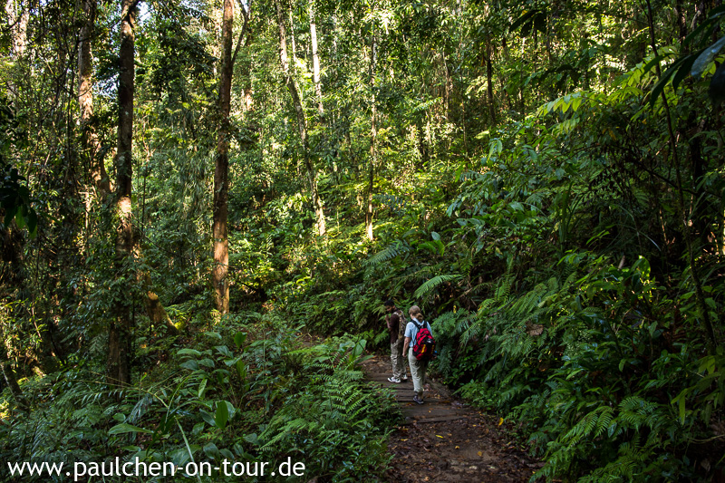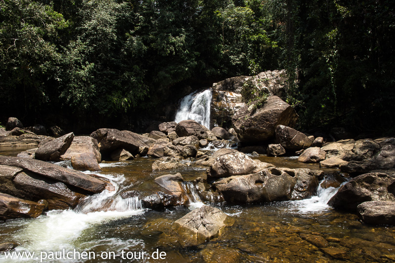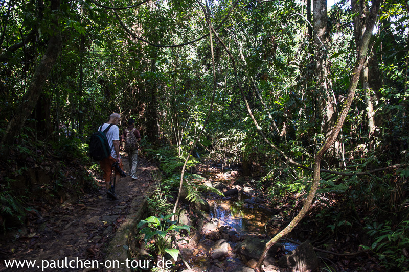 Um zum Sinharaja Waldreservat zu gelangen mussten wir mit dem Bus drei Mal umsteigen. Wir kamen in einem kleinen Guesthouse mit drei Zimmern unter. Am nächsten Morgen unternahmen wir mit einem obligatorischen Führer eine tolle Tagestour in den letzten Regenwald Sri Lankas. Hier begegneten wir vielen Reptilien, Affen und sahen auch das Rieseneichhörnchen. Von den vielen Blutegeln blieben wir verschont, denn die Einheimischen reiben die kompletten Schuhe mit Salz ein, damit die Blutegel nicht zu den Beinen hochkrabbeln können.