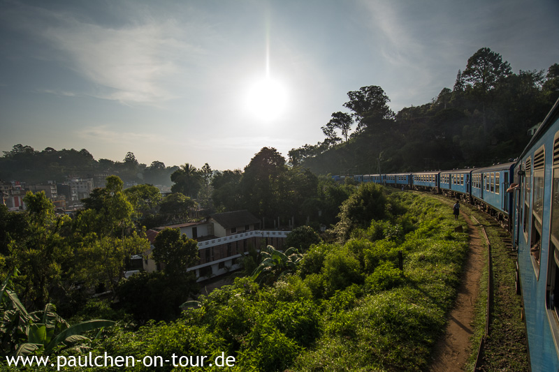 Das touristische Highlight ist natürlich eine Fahrt mit der Eisenbahn durch das Hochland. Deswegen ist es auch sehr schwer ein Ticket für den Zug zu bekommen, in Colombo war es komplett unmöglich aber in Ella konnten wir noch Tickets für die 3. Klasse ergattern, immerhin mit reservierten Plätzen. Also setzten wir unsere Reise mit einer Bahnfahrt nach Kandy fort. Man fühlt sich um mindestens hundert Jahre zurückversetzt, das Rattern des Zuges ist ohrenbetäubend und das Holpern und Schlingern der Wagons auf der alten Trasse mit den ausgefahrenen Schienen lässt einem der Atem stocken. Die Ausblicke entlang der Strecke auf die vielen Teeplantagen und die Bergwelt sind durchaus lohnenswert.